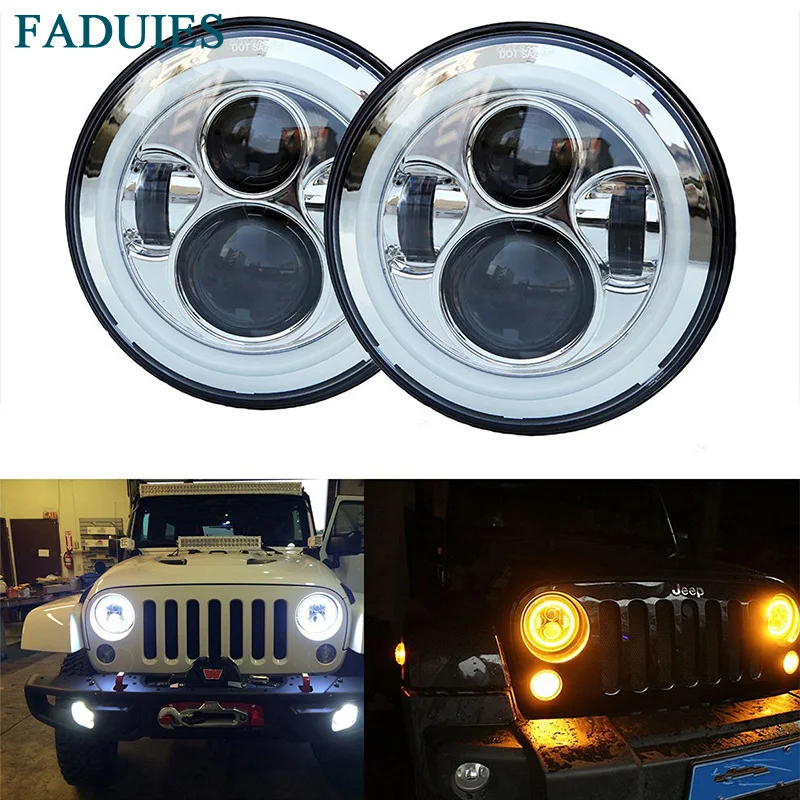 FADUIES 7Inch Round Led Headlamp H4 High Low Beam white Halo With Yellow Turn Signal For LADA Jeep